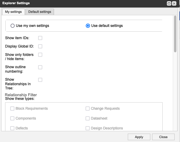 Use my own settings — Overrides the default Explorer Tree settings with your personal settings.